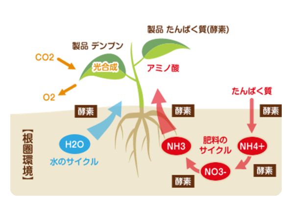 特殊な酵素を含んだ液体肥料をトマト株の根本に灌水することで、土壌の微生物や細菌、酵素の働きを活性化。それによって植物の健全な成長が促されます。
