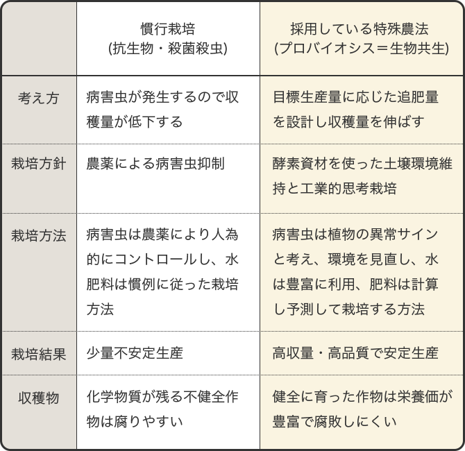 農薬に頼らず、土壌の生物たちと共生するサスティナブルな栽培技術です。
